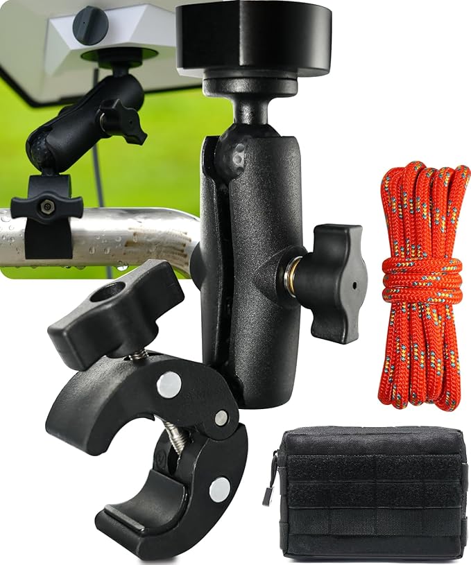 Adjustable Clamp: The mount features a sturdy adjustable clamping mechanism that holds it securely to a surface and prevents the unit from being accidentally dislodged. Suitable for 0.6-1.56” poles, it can be securely mounted on the roof rails of a van or the vertical stairs of a caravan